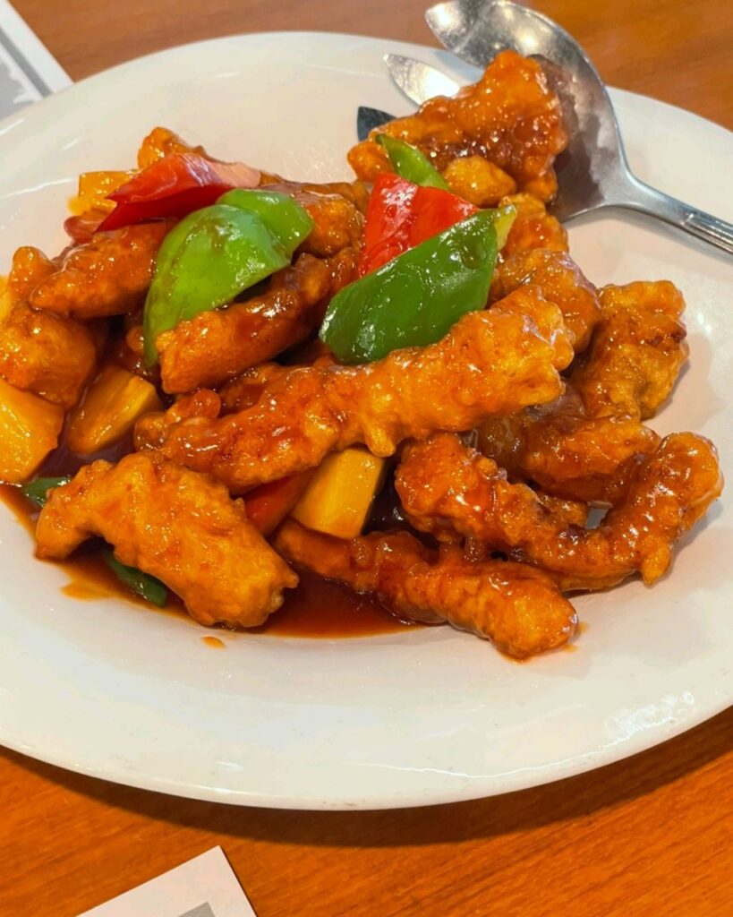 ‘차이나몽’에 방문했다면, 탕수육보다 먼저 **’유린기’**를 주문해야 한다는 말이 있을 정도로 이곳의 유린기는 독보적입니다. 바삭하게 튀겨낸 닭고기 위에 아삭한 양상추와 양파, 그리고 알싸한 고추를 듬뿍 올리고, 새콤짭짤한 특제 간장 소스를 부어 내어주는 요리인데요.